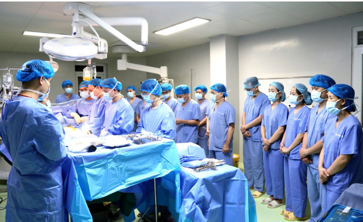 Êkip phẫu thuật tại Bệnh viện đa khoa tỉnh Phú Thọ cúi đầu tri ân người hiến tạng trước khi phẫu thuật. Ảnh: Bệnh viện Đa khoa tỉnh Phú Thọ |