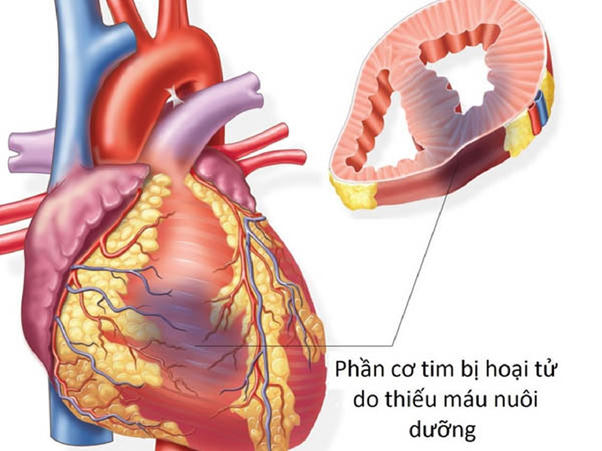 Đây là biến chứng nguy hiểm nhất của thiếu máu cơ tim, tình trạng này xảy ra khi dòng máu mang oxy và chất dinh dưỡng đến tim bị tắc nghẽn đột ngột, khiến một phần cơ tim bị thiếu máu, tổn thương, thậm chí hoại tử.