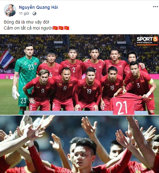 Vốn là người bình tĩnh và bản lĩnh trên sân cỏ, nhưng sau khi Công Phượng bị đội bạn chơi xấu, Đội phó Quang Hải cũng phải nổi cáu và tức giận. Thẻ vàng cho đội bạn dường như vẫn chưa phải là hình phạt thích đáng cho hành vi chơi xấu của tuyển Thái. Có lẽ vì vậy, sau trận đối đầu Đội phó đã trấn an người hâm mộ" Bóng đá là như vậy đó. Cảm ơn tất cả mọi người".