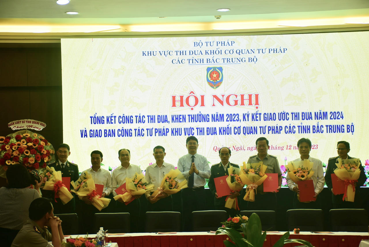 (PLVN) - Chiều 14/12, tại Quảng Ngãi, Khu vực thi đua Khối cơ quan Tư pháp các tỉnh Bắc Trung bộ (Bộ Tư pháp) tổ chức Hội nghị Tổng kết công tác thi đua, khen thưởng, giao ban công tác tư pháp Khu vực thi đua Khối cơ quan Tư pháp các tỉnh Bắc Trung bộ năm 2023.