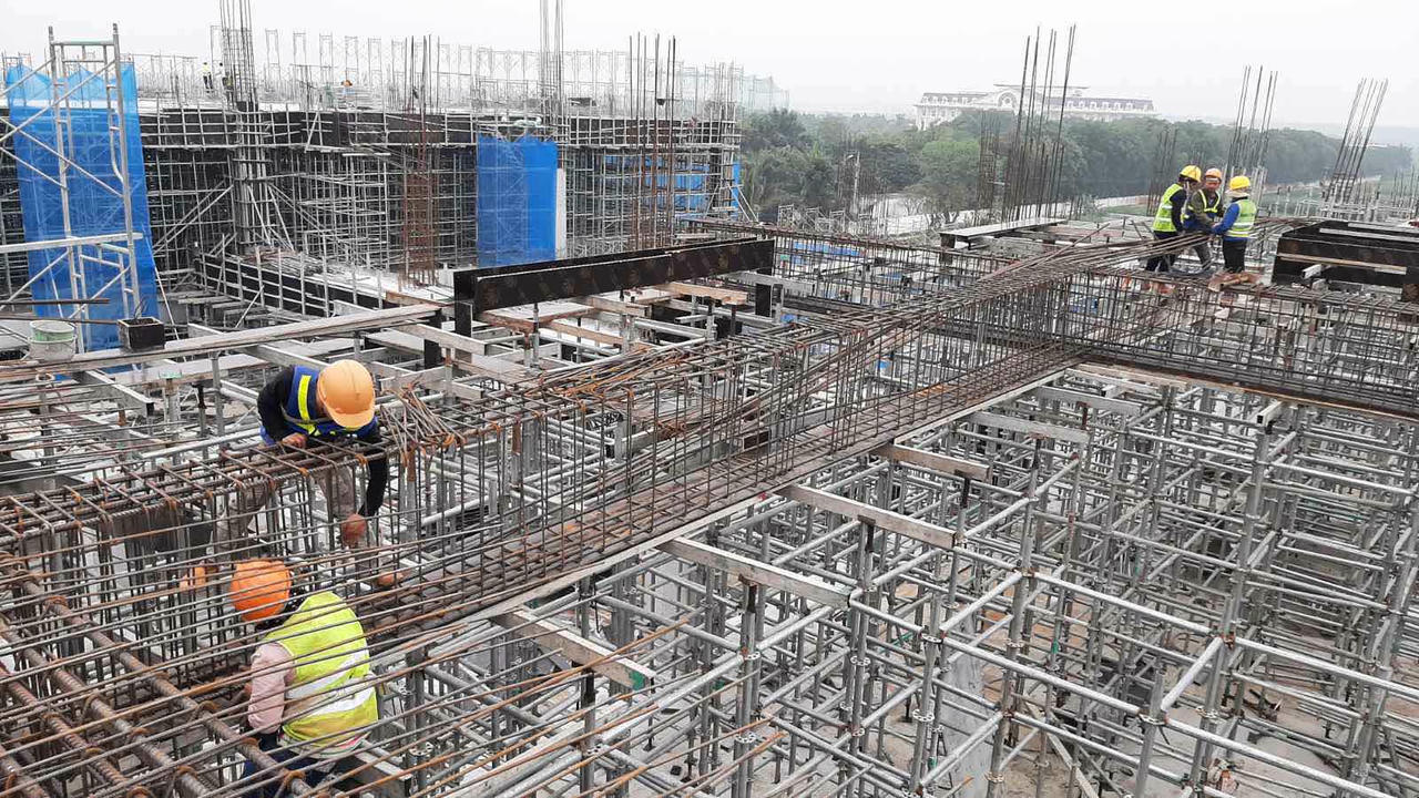 Khi nhiều công trường xây dựng tại Quảng Bình hầu như đã tạm dừng thi công nghỉ Tết, thì tại FLC Quảng Bình, hàng chục thiết bị máy móc, xe trộn bê tông, xe cẩu liên tục hoạt động suốt ngày đêm. Các công nhân tiến hành thi công kết cấu cốt pha, cốt thép để tiến hành đổ bê tông cột, khung dầm, với mục tiêu đưa hai hạng mục nói trên về đích ngay trong năm 2021.