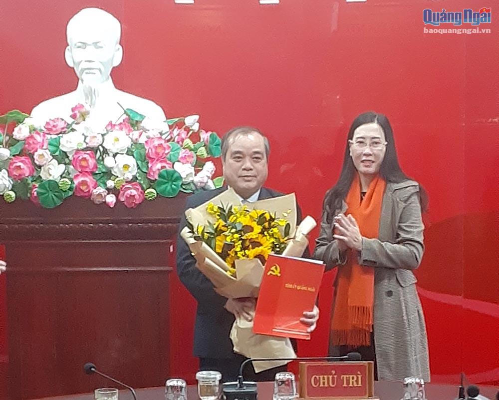 Trao quyết định và chúc mừng đồng chí Trần Hoàng Tuấn, Bí thư Tỉnh ủy Quảng Ngãi Bùi Thị Quỳnh Vân tin tưởng trên cương vị mới, đồng chí sẽ tiếp tục phát huy năng lực, kinh nghiệm công tác, đoàn kết cùng tập thể, hoàn thành tốt nhiệm vụ được giao.