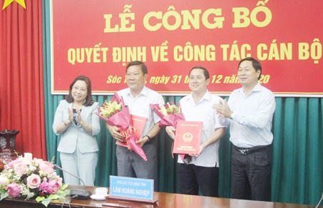 * Trước đó, chiều ngày 31/12, tại UBND tỉnh Sóc Trăng đã tổ chức Lễ công bố quyết định của Thủ tướng Chính phủ phê chuẩn việc miễn nhiệm chức vụ Phó Chủ tịch UBND tỉnh Sóc Trăng nhiệm kỳ 2016-2021 đối với đồng chí Lê Văn Hiểu để nhận nhiệm vụ mới; phê chuẩn miễn nhiệm chức vụ Phó Chủ tịch UBND tỉnh Sóc Trăng nhiệm kỳ 2016-2021 đối với đồng chí Ngô Hùng để nhận nhiệm vụ mới; phê chuẩn kết quả bầu bổ sung chức vụ Phó Chủ tịch UBND tỉnh Sóc Trăng nhiệm kỳ 2016-2021 đối với đồng chí Huỳnh Thị Diễm Ngọc, Tỉnh ủy viên, Chánh Văn phòng UBND tỉnh Sóc Trăng; phê chuẩn kết quả bầu bổ sung chức vụ Phó Chủ tịch UBND tỉnh Sóc Trăng nhiệm kỳ 2016-2021 đối với đồng chí Vương Quốc Nam, Tỉnh ủy viên, Bí thư Huyện ủy Kế Sách.