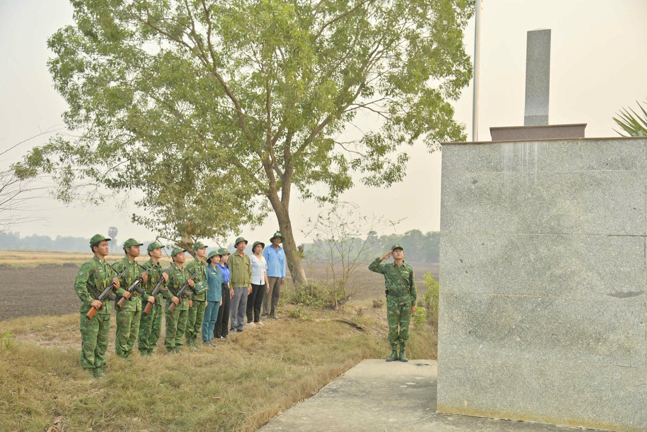 Tổ tuần tra đồn Biên phòng cửa khẩu Giang Thành và các đoàn thể địa phương tuần tra bảo vệ mốc chủ quyền trên địa bàn phụ trách. |