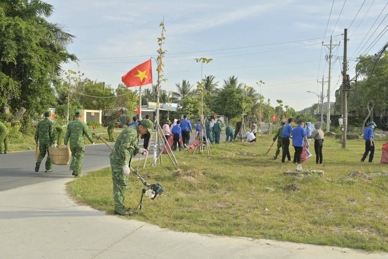 Cán bộ, chiến sĩ đồn Biên phòng cửa khẩu Quốc tế Hà Tiên và các đoàn thể địa phương dọn dẹp vệ sinh đường giao thông nông thôn nhân Ngày hội Biên phòng toàn dân... |