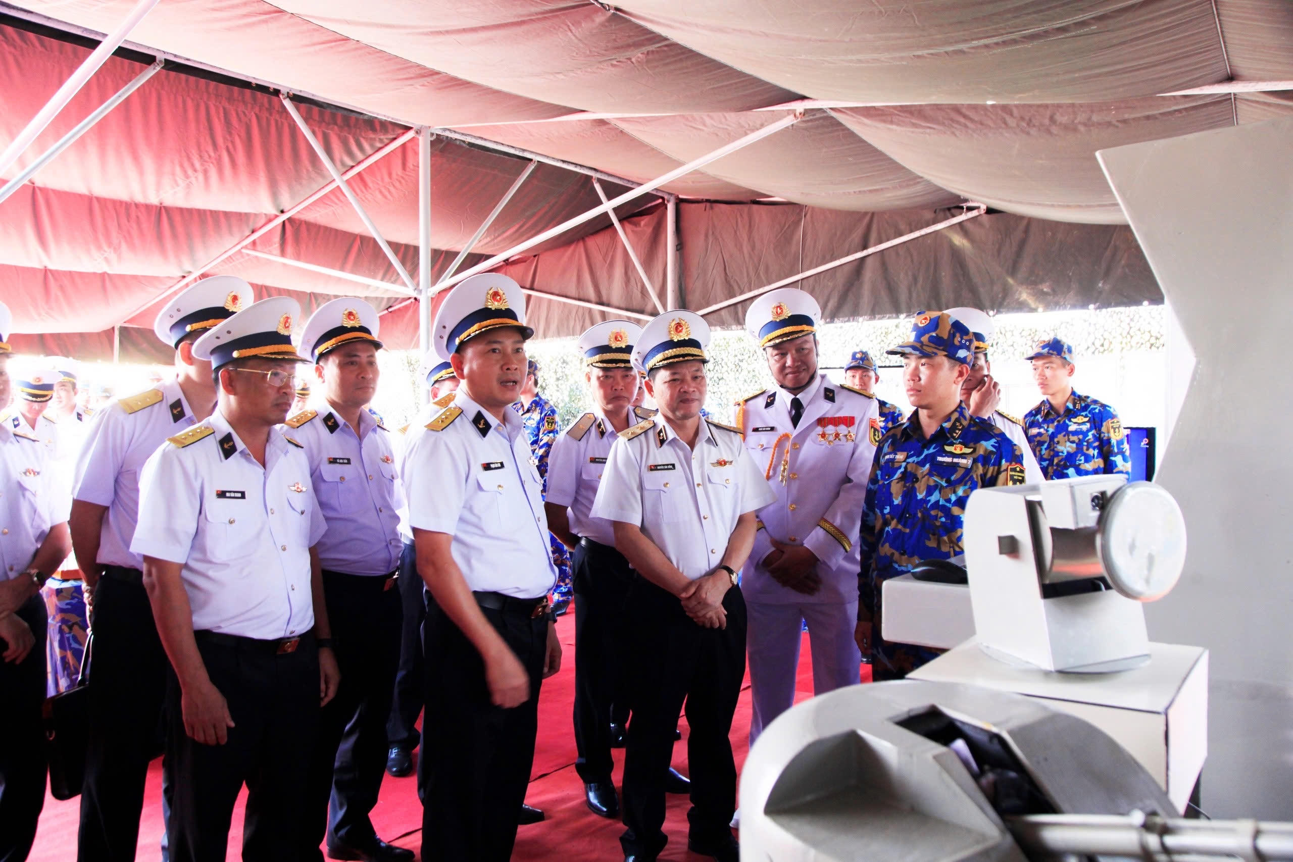 Trung tướng Nguyễn Văn Bổng, Bí thư Đảng uỷ, Chính uỷ Hải quân kiểm tra mô hình học cụ trưng bày tại Lễ ra quân huân luyện LĐ 162, Vùng 4 HQ. |