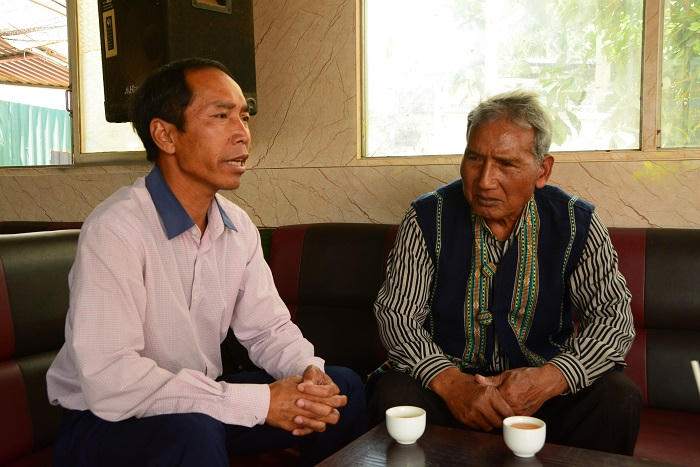 Già làng Ka Să Ha Tang (phải) kịch liệt lên án hành động dã man của nhóm đối tượng tấn công trụ sở UBND xã ở huyện Cư Kuin (Đắk Lắk).