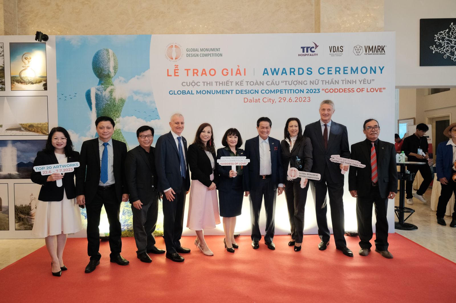 (PLVN) - Tối ngày 29/6/2023, trong không gian lãng mạn của thành phố Đà Lạt, chủ nhân của các giải thưởng đã chính thức được công bố tại Lễ Trao giải Cuộc thi Thiết kế Toàn cầu “Tượng Nữ thần Tình yêu”.