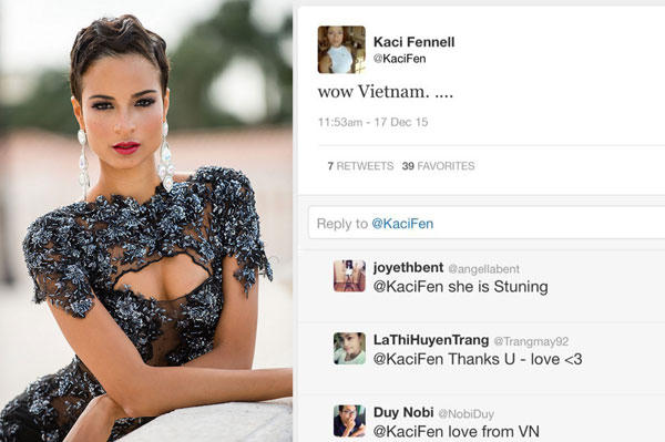 Kaci Fennell - người đẹp cá tính của Jamaica từng giành ngôi Á hậu Miss Universe 2014 thốt lên: "Wow Việt Nam!".