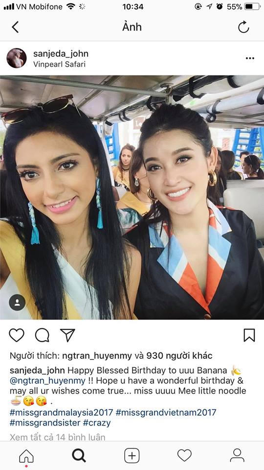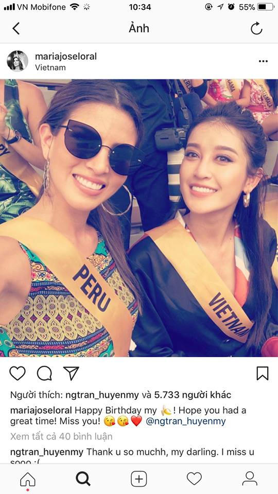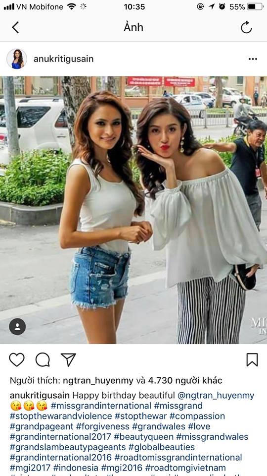 Cũng trong dịp sinh nhật này, Huyền My vô cùng hạnh phúc và vinh dự nhận được rất nhiều lời chúc mừng sinh nhật từ nhiều Hoa Hậu trên khắp thế giới gửi đến cô, trong đó có cả Hoa Hậu Hòa Bình thế giới 2017.