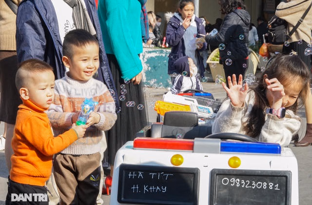 Nhiều em nhỏ được bố mẹ cho lên phố đi bộ chơi các trò chơi, chạy nhảy...
