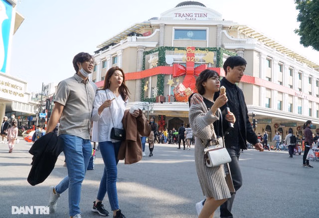 Chiều mùng 1 Tết dương lịch, hàng vạn người đã đổ về phố đi bộ hồ Gươm vui chơi, giải trí.