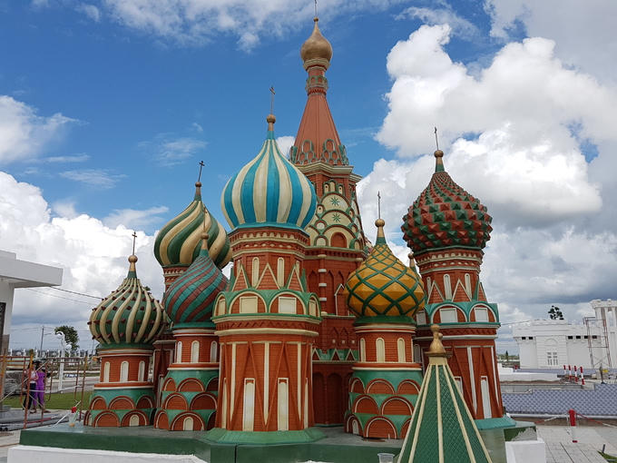 Mô hình nhà thờ chính tòa Thánh Basil (St. Basil's Cathedral) nổi bật giữa công viên với các màu sắc sặc sỡ. Đây cũng là một trong những công trình kiến trúc nổi tiếng nhất của thủ đô Moscow, Nga.