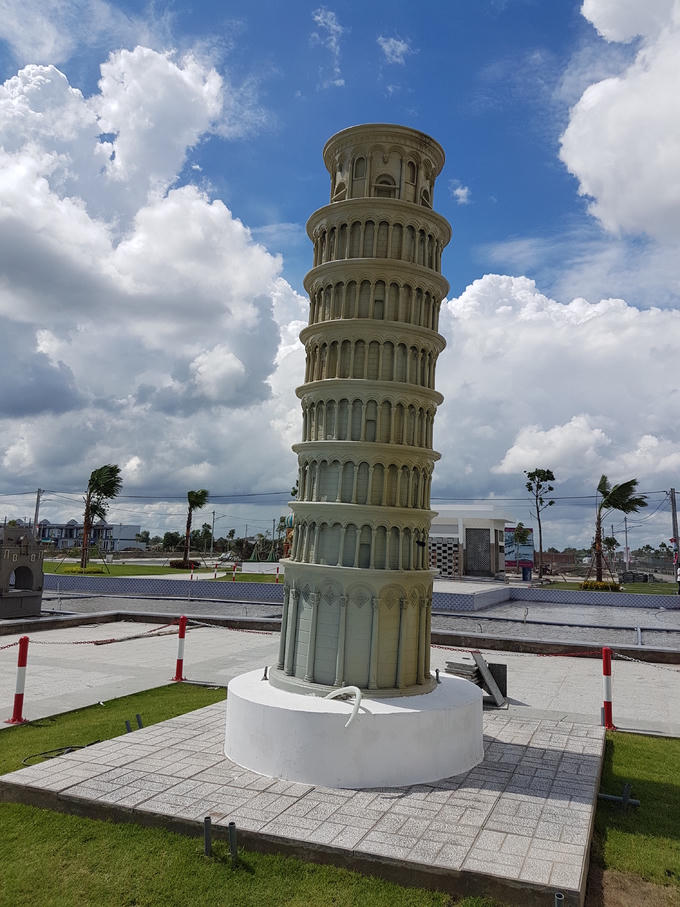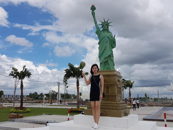 Trong công viên khu dân cư Cát Tường Phú Sinh, tại ấp Rạch Sên, xã Mỹ Hạnh Bắc, huyện Đức Hòa, Long An, mới xuất hiện rất nhiều mô hình phỏng theo các công trình nổi tiếng thế giới.