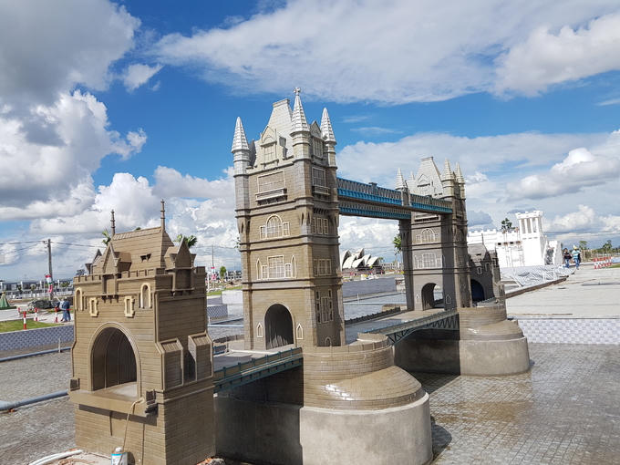 Cầu tháp London là một công trình kết hợp cầu treo với cầu nâng bắc qua sông Thames tại thủ đô London, Vương quốc Anh. Mô hình này được đặt ngay trước cửa công viên, phía trước có hồ nước đang dần được hoàn thiện. Công viên mở cửa tham quan miễn phí, dự kiến tới 2/9 sẽ hoàn thiện toàn bộ. Du khách đến đây có thể sử dụng bãi gửi xe của khu dân cư cao cấp.