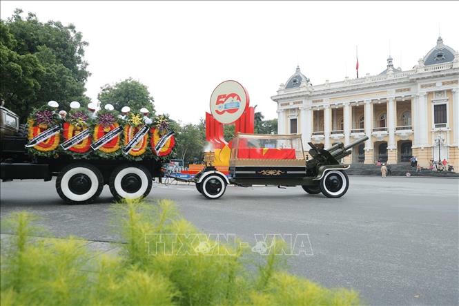 | Đoàn xe chuyển linh cữu nguyên Chủ tịch nước Trần Đức Lương đi qua Quảng trường Cách mạng tháng Tám. Ảnh: TTXVN |