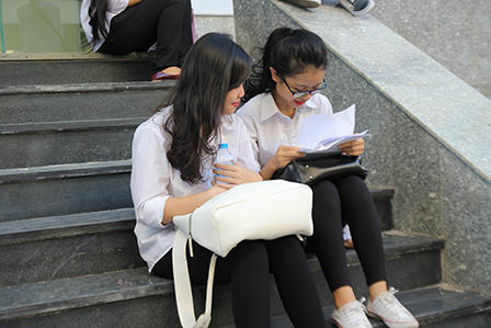Nguyễn Hoàng Linh (Cầu Giấy, Hà Nội) cho biết: “Mặc dù nhà em rất gần trường thi nhưng em đã có mặt từ sớm để ổn định tâm lý trước khi thi. Và tranh thủ ôn lại bài”