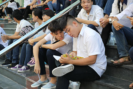 Còn bạn Nguyễn Việt Hưng (Quốc Oai, Hà Nội) chia sẻ: “Sợ đi muộn nên em và bố đã sang đây từ rất sớm. Phần cũng vì hồi hộp lo lắng ở lại phòng trọ cũng không yên tâm”