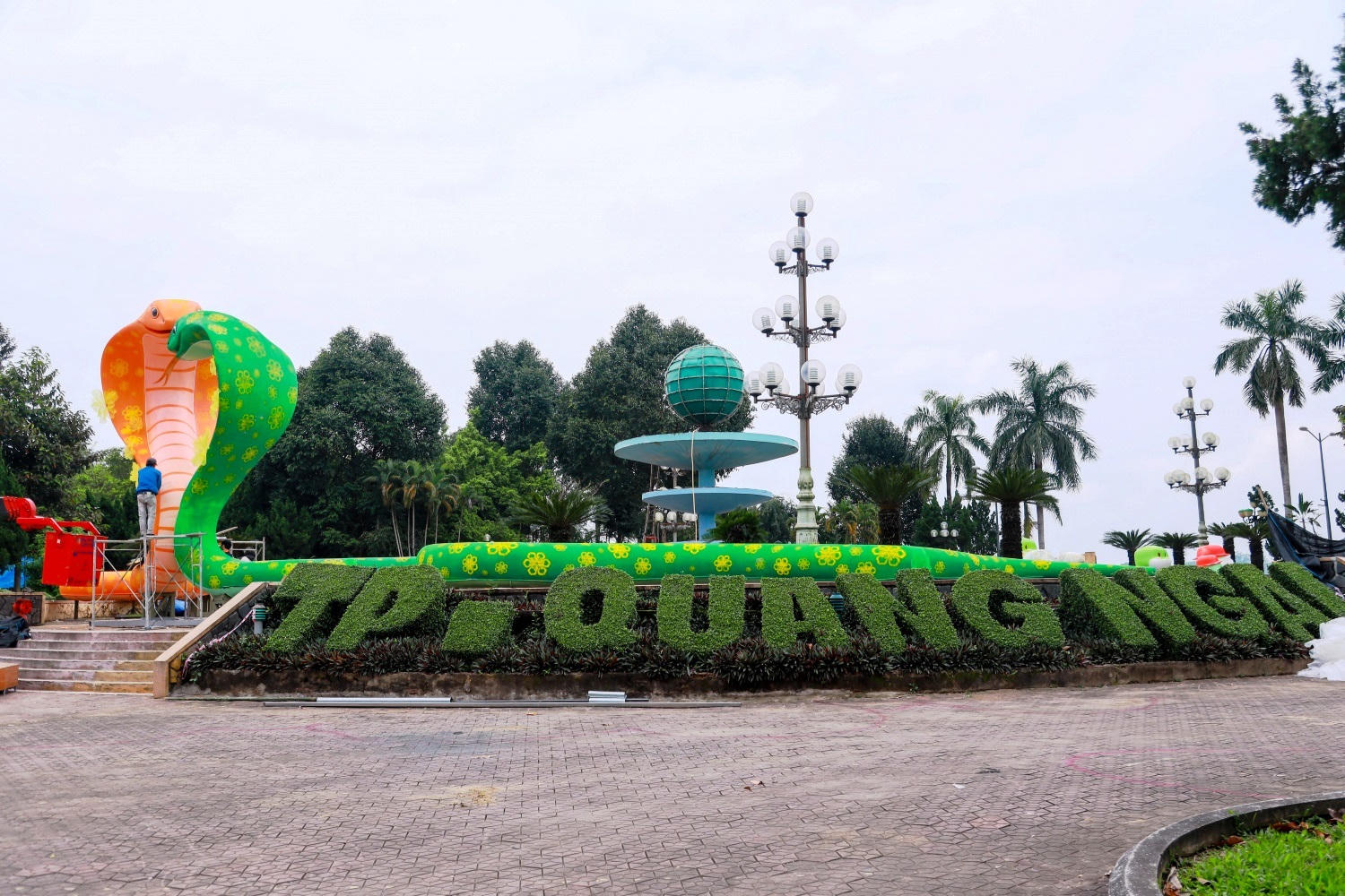 Cùng với linh vật rắn, các tiểu cảnh trang trí khác tại công viên Ba Tơ cũng đang được thi công gấp rút.