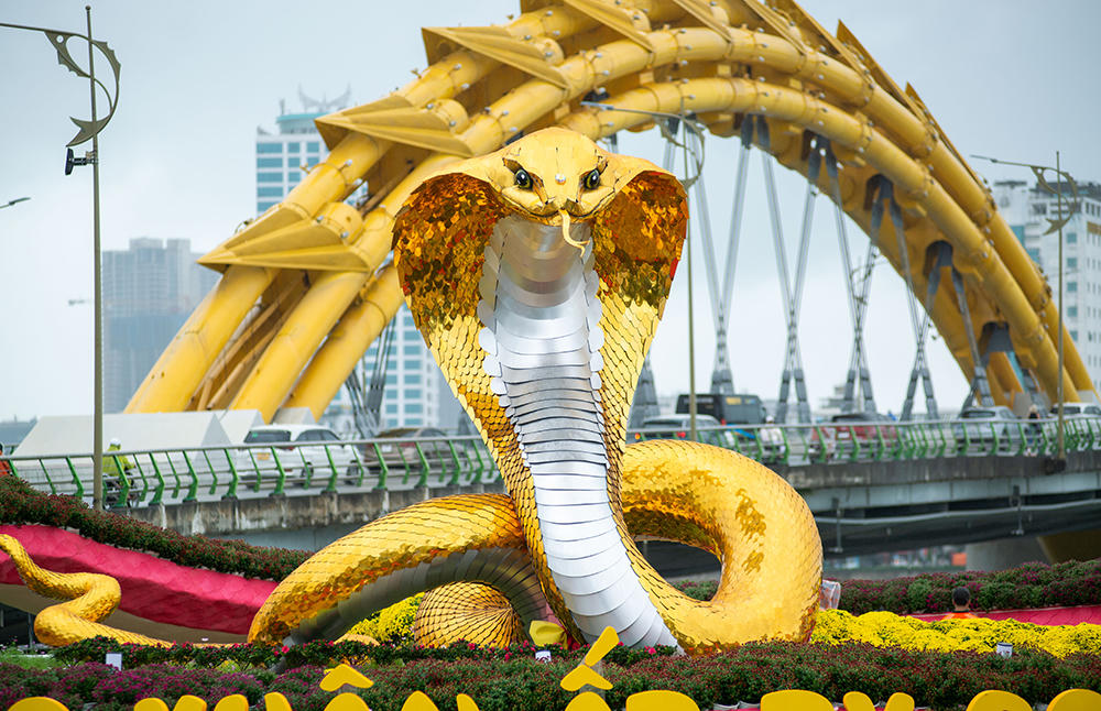 Những ngày này, linh vật Rắn tại đường hoa Xuân của Đà Nẵng đã gần như hoàn thiện và thu hút đông đảo người dân và du khách đến chiêm ngưỡng và check in.