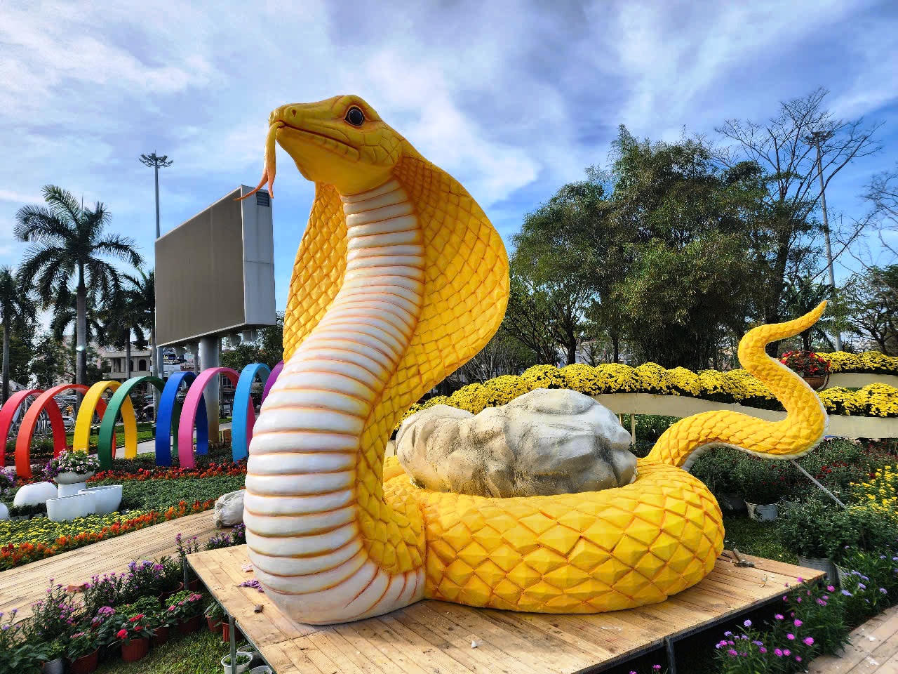Linh vật rắn này nằm tại vị trí phía tây sông Hàn (đối diện Bảo tàng Chăm). Các đường hoa uốn lượn dẫn về cụm hoa ở giữa, nơi đặt linh vật rắn, tạo nên điểm nhấn của đường hoa Tết Ất Tỵ.