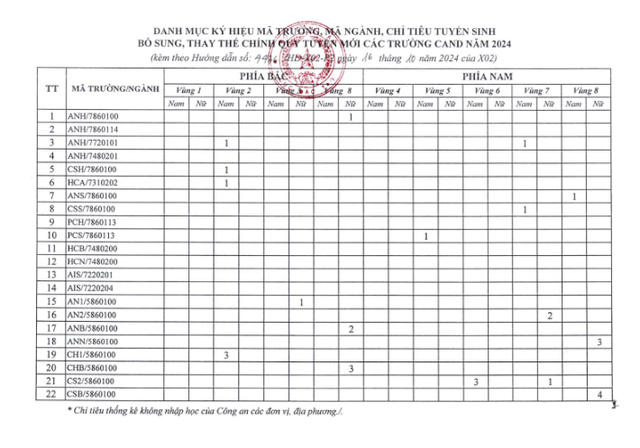 (PLVN) - Cục Đào tạo, Bộ Công an vừa có văn bản hướng dẫn tuyển sinh bổ sung, thay thế chính quy tuyển mới Công an nhân dân (CAND) năm 2024.