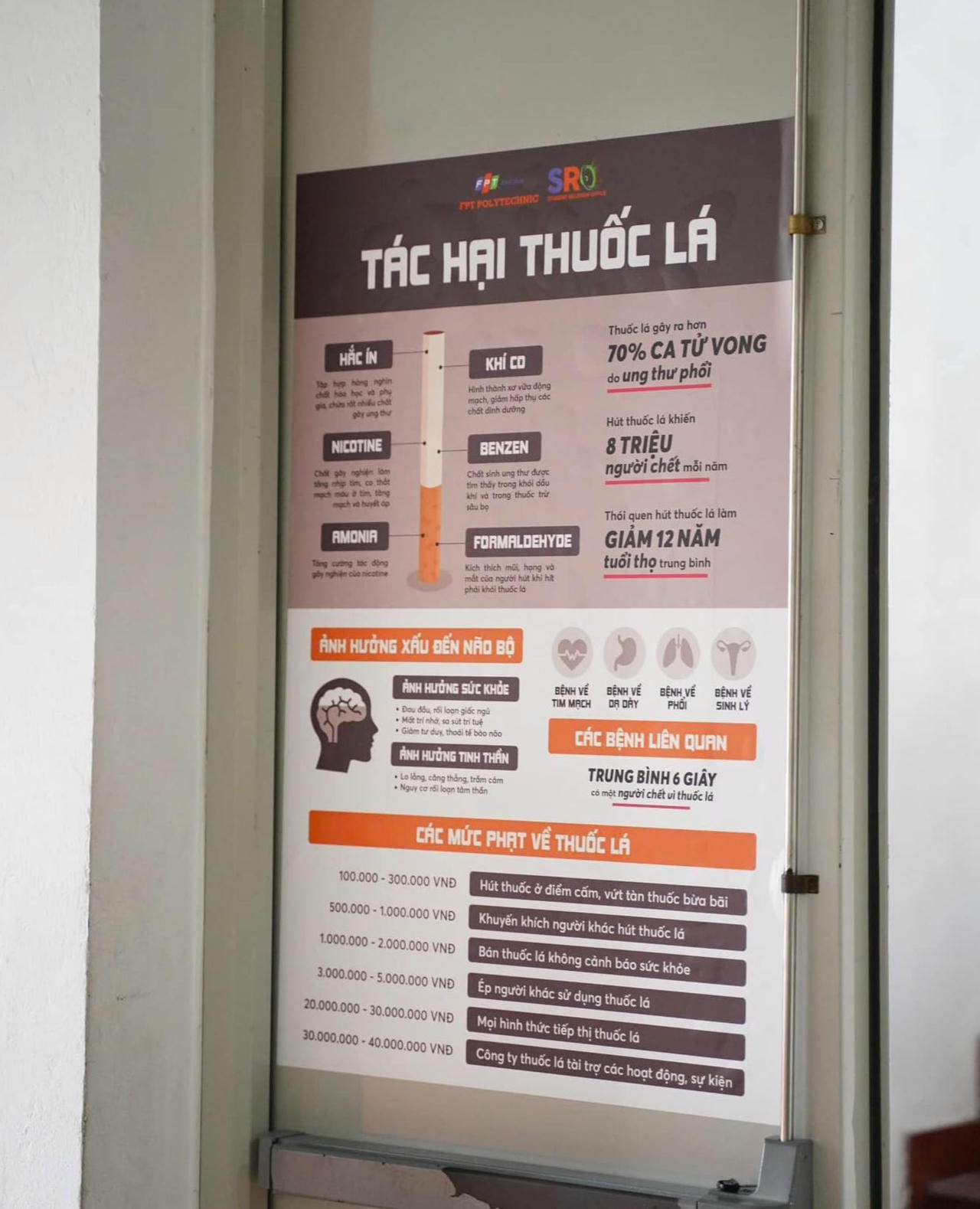 Tuyên truyền về tác hại và các mức phạt về thuốc lá trong khuôn viên FPT Polytechnic. |