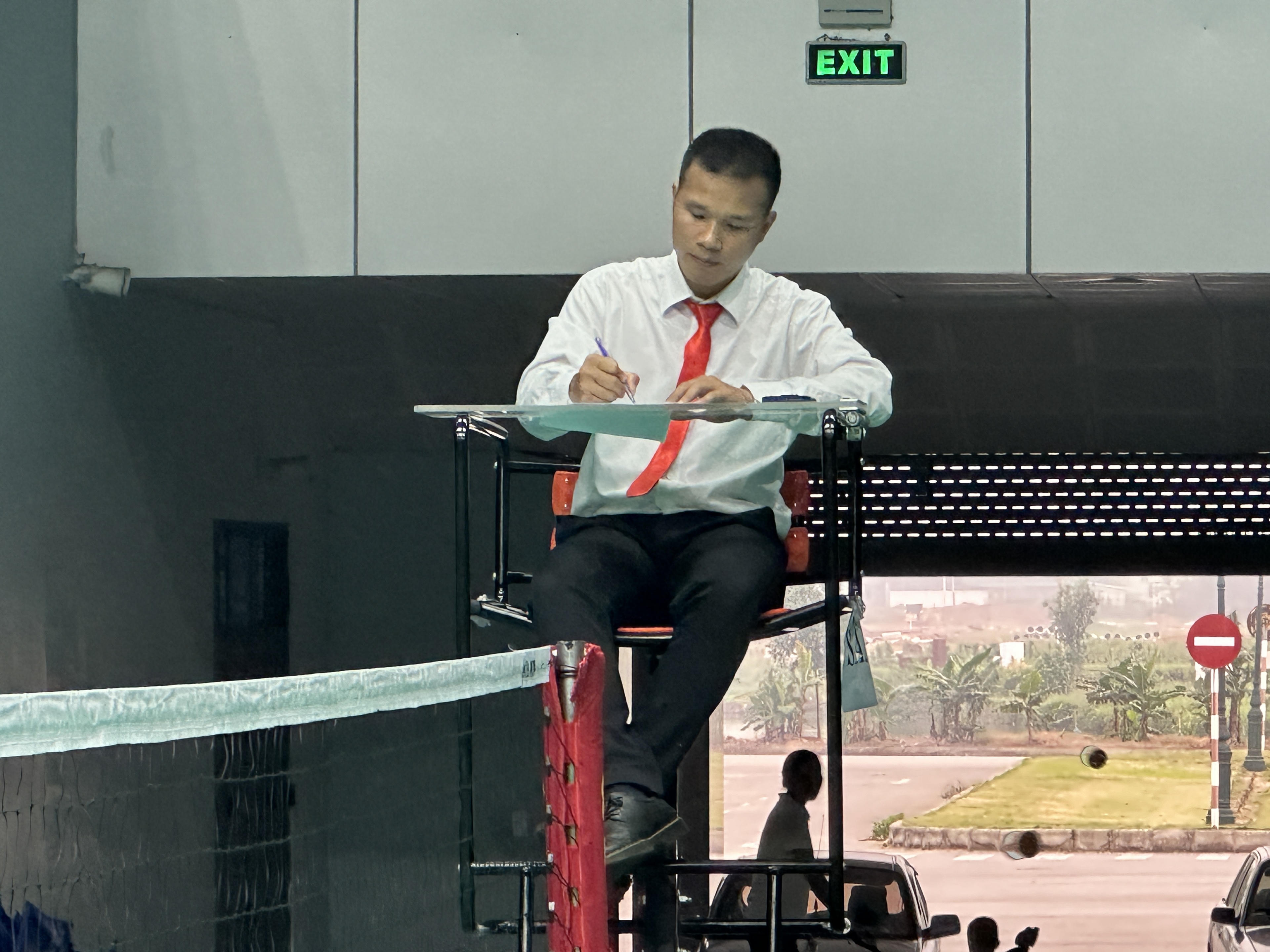 Tổ trọng tài làm việc trong ngày đầu thi đấu |