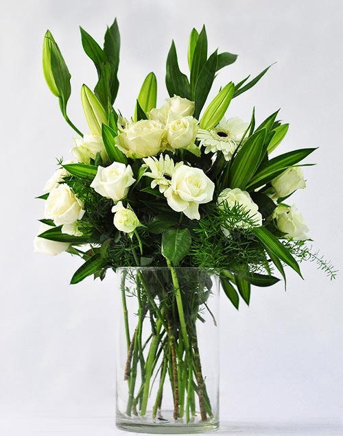 1.Cắm hoa hồng đơn giản bằng lọ thủy tinh đứng
