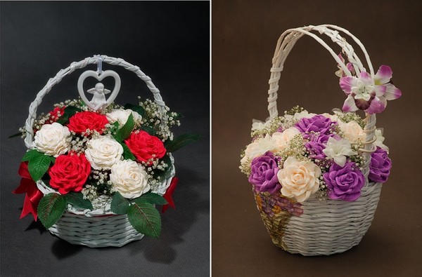3. Cắm hoa hồng bằng lẵng