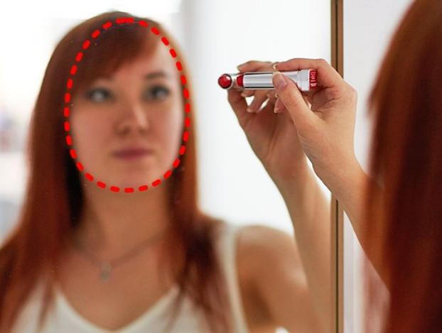 Đứng trước gương, cách 1 sải tay, bạn hãy lấy 1 cây son hoặc 1 cái bút đánh dấu vẽ bắt đầu từ cằm đến chân tóc. Sau đó bạn sẽ thấy hình dạng khuôn mặt của mình.