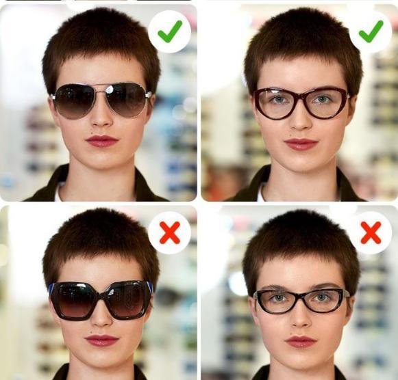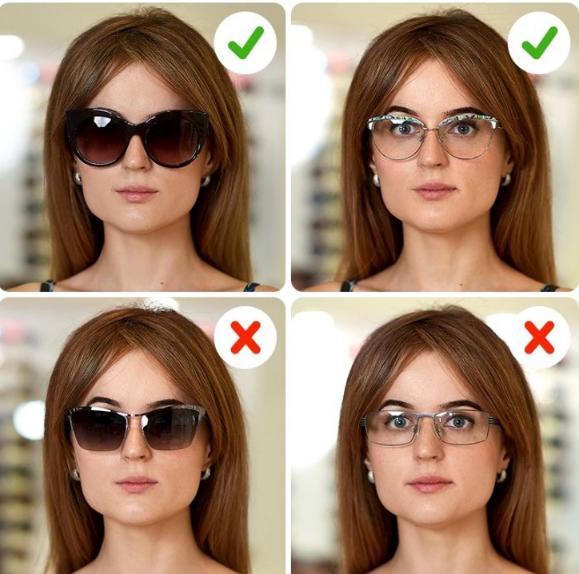 Loại kính hợp với khuôn mặt hình chữ nhật: Kính gọng lớn, gọng tròn… Kính không phù hợp với khuôn mặt hình chữ nhật: Khung hẹp, kính nhỏ, kính có gọng sáng, nhiều màu… Mặt hình trái tim