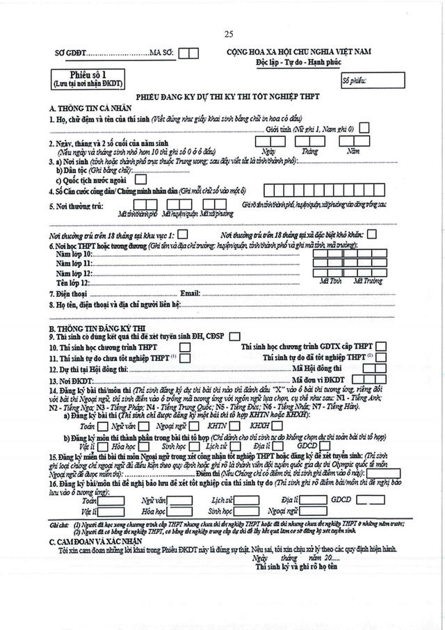 Mục 1, 2: Ghi theo hướng dẫn trên Phiếu đăng ký dự thi kỳ thi tốt nghiệp THPT (sau đây gọi tắt là Phiếu ĐKDT).