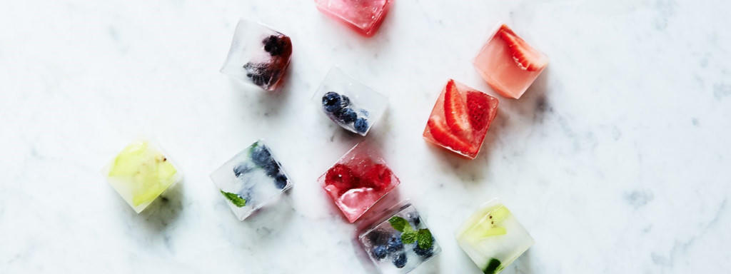 Biến tấu cho những viên đá lạnh: Bạn có thể tăng hương vị cho cốc nước hoa quả bằng cách thái nhỏ loại quả mình thích, cho vào khay nước đá và làm đông chúng lại. Khi uống, bạn chỉ cần lấy ra vài viên, thêm vào cốc nước quả là bạn đã có ngay thức uống mát lạnh mà không bị ảnh hưởng hương vị do đá tan ra. Bạn cũng có thể xắt nhỏ rau xanh, trộn chúng với dầu ô liu, và đặt chúng trong khuôn nước đá. Ảnh: Shopify.