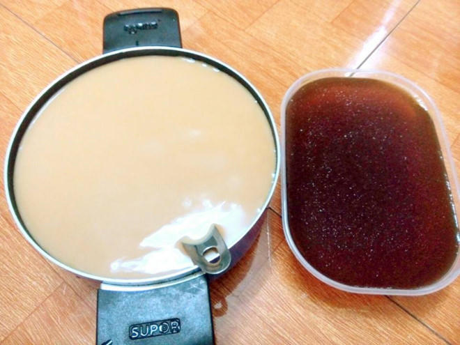 Phần trà sữa và phần thạch sau khi đã nấu xong.