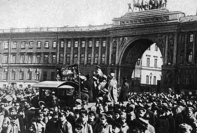 | Những người Bonsevich đang phát biểu trước cuộc mít tinh của những người công nhân và binh lính tại Petrograd năm 1917 |