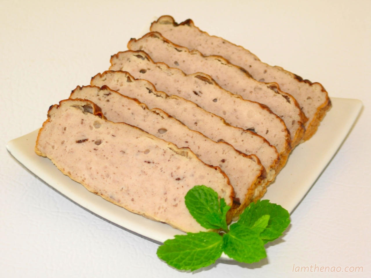Dùng dao cắt mà dao bị xít, dính mặt giò, khó thái chứ không trơn tuột. Giò vừa dai lại giòn, thơm ngon lại bùi, có mùi lá chuối... Nhìn miếng giò mịn và hơi ẩm.