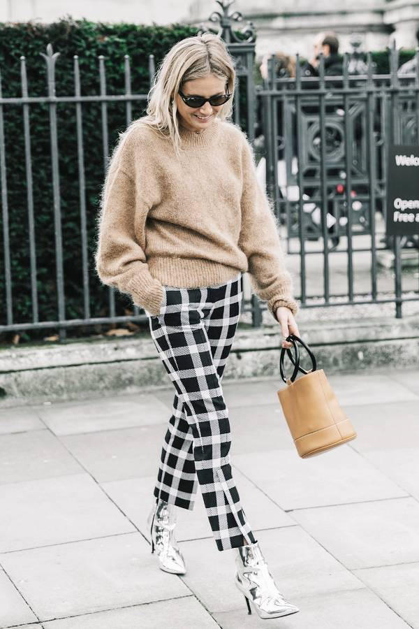 Tạo điểm nhấn cho set đồ đơn giản với áo len, quần vải bằng phụ kiện đắt giá như bốt ánh bạc, kính mắt hay túi xách sành điệu.