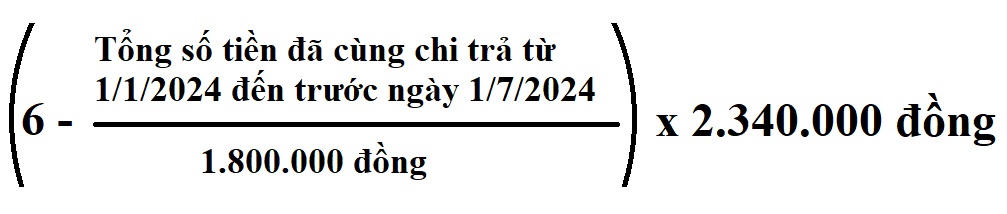 Đối với các trường hợp có số tiền cùng chi trả từ 01/01/2024 đến trước ngày 01/7/2024 đã đủ hoặc vượt quá 6 tháng lương cơ sở thì được hưởng quyền lợi theo quy định trên và không áp dụng công thức này.