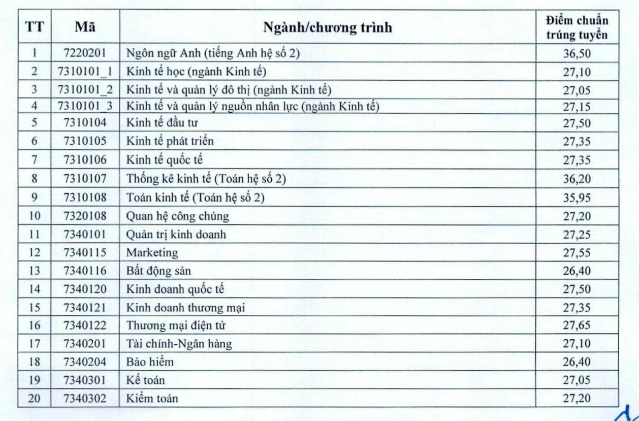 Điểm chuẩn Trường Đại học Kinh tế Quốc dân dao động từ từ 26,2 đến 27,83 điểm.