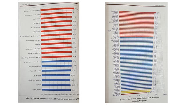 Kết quả Chỉ số Cải cách hành chính năm 2017 của các bộ, ngành chia làm 2 nhóm. Nhóm thứ nhất gồm 12 bộ, cơ quan ngang bộ có Chỉ số Cải cách hành chính trên 80%, gồm: Ngân hàng Nhà nước Việt Nam, Bộ Thông tin và Truyền thông, Bộ Tài chính, Bộ Tư pháp, Bộ Công Thương, Bộ Ngoại giao, Bộ Nông nghiệp và Phát triển nông thôn, Bộ Khoa học và Công nghệ, Bộ Nội vụ, Bộ Tài nguyên và Môi trường, Bộ Giáo dục và Đào tạo, Bộ Lao động, Thương binh và Xã hội.