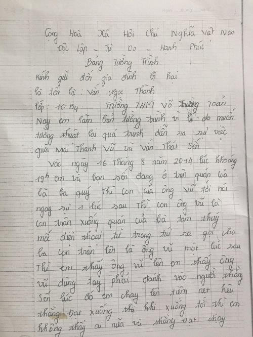 “Yêu cầu bây giờ của mình là trả lại sự công bằng cho con mình thôi. Phải điều tra rõ ràng. Con mình không có bệnh. Mà nếu có bệnh, thì cũng do ông Mai Thanh Sơn đánh, mới phát bệnh nên rồi chết. Làm sao lại có chuyện làm chết người rồi nhởn nhơ được. Oan ức quá”.