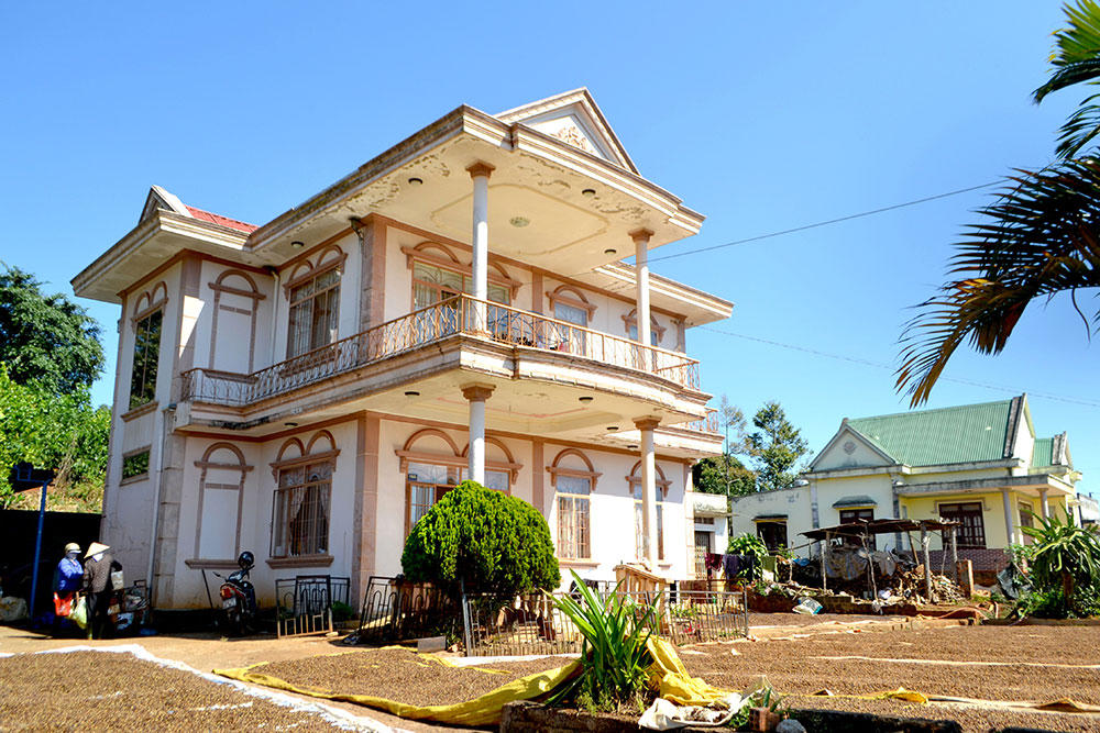 - Lâu lắm, từ cái thời ông bà, đồng bào dân tộc của mình, không ai dám nghĩ tới chiếc xe đạp, vậy mà chỉ sau vài vụ cà phê, thì cả làng rộn ràng tập luôn xe máy. Vui nhất là chuyện đồng bào mình xây nhà ở. Sau khi trúng mấy vụ cà phê thấy người Kinh xây nhà, đồng bào mình cũng xây theo. Đồng bào nói, hễ người Kinh làm gì thì mình làm nấy; người Kinh xây được nhà thì mình cũng xây. Thấy người Kinh làm kệ bếp cao và dài, đồng bào cũng làm bếp dài và cao. Nhưng đồng bào mình nấu bếp củi quen rồi nên bà con ở nhà xây, nấu bếp nhà sàn...