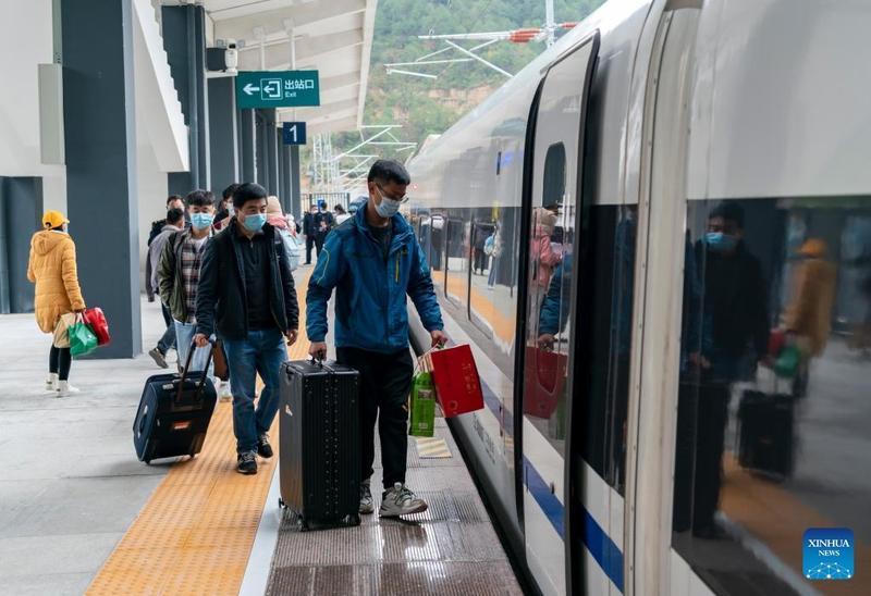 Ga đường sắt Xiaowandong ở thị trấn Xiaowandong của quận tự trị Nanjian Yi, tỉnh Vân Nam phía tây nam Trung Quốc, ngày 28/1/2022. Ảnh: Xinhuanet