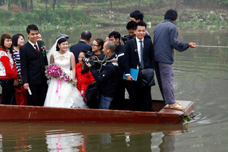 Cám cảnh: cô dâu Hà Nội kéo dây chèo thuyền về nhà chồng