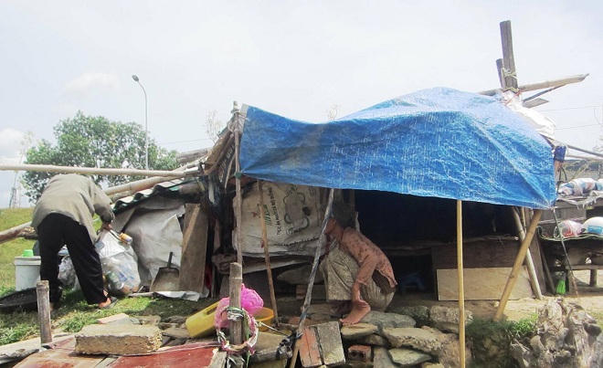 Ngồi co trong túp lều chật chội, ông Dần bộc bạch, vợ chồng ông từ nơi khác di cư đến đây sinh sống, không có tiền thuê nhà nên phải ra ven sông ở. Ông Dần quê Thanh Hóa, nhà nghèo lại đông anh em nên phải bươn chải từ nhỏ. Khi mới mười tám, đôi mươi, ông đã xa quê vào TP.Vinh kiếm sống. Lúc đầu đi bốc vác, sau nhặt phế liệu về bán.