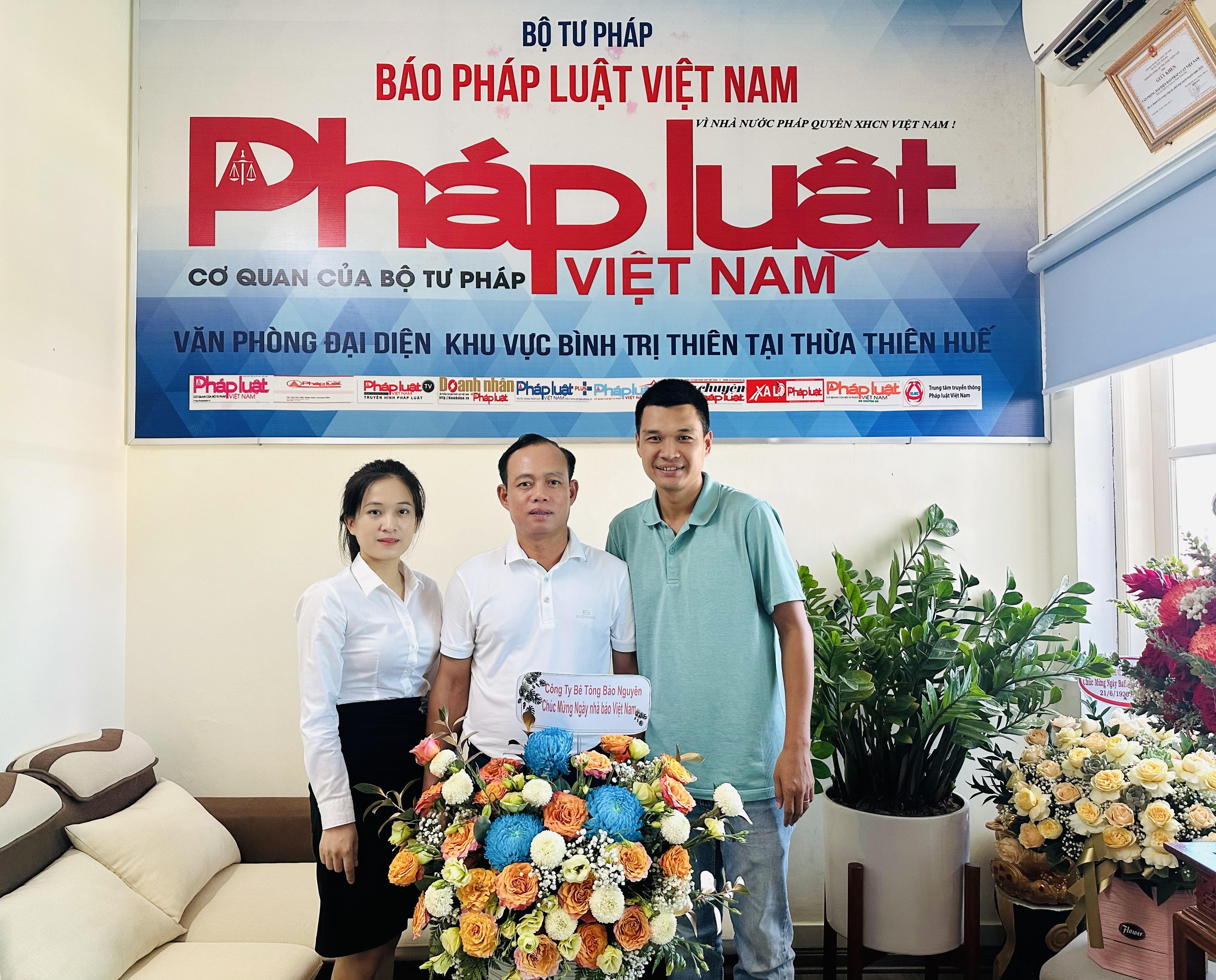 Công ty Bê tông Bảo Nguyên tặng hoa chúc mừng VPĐD Báo Pháp luật Việt Nam Khu vực Bình Trị Thiên. |