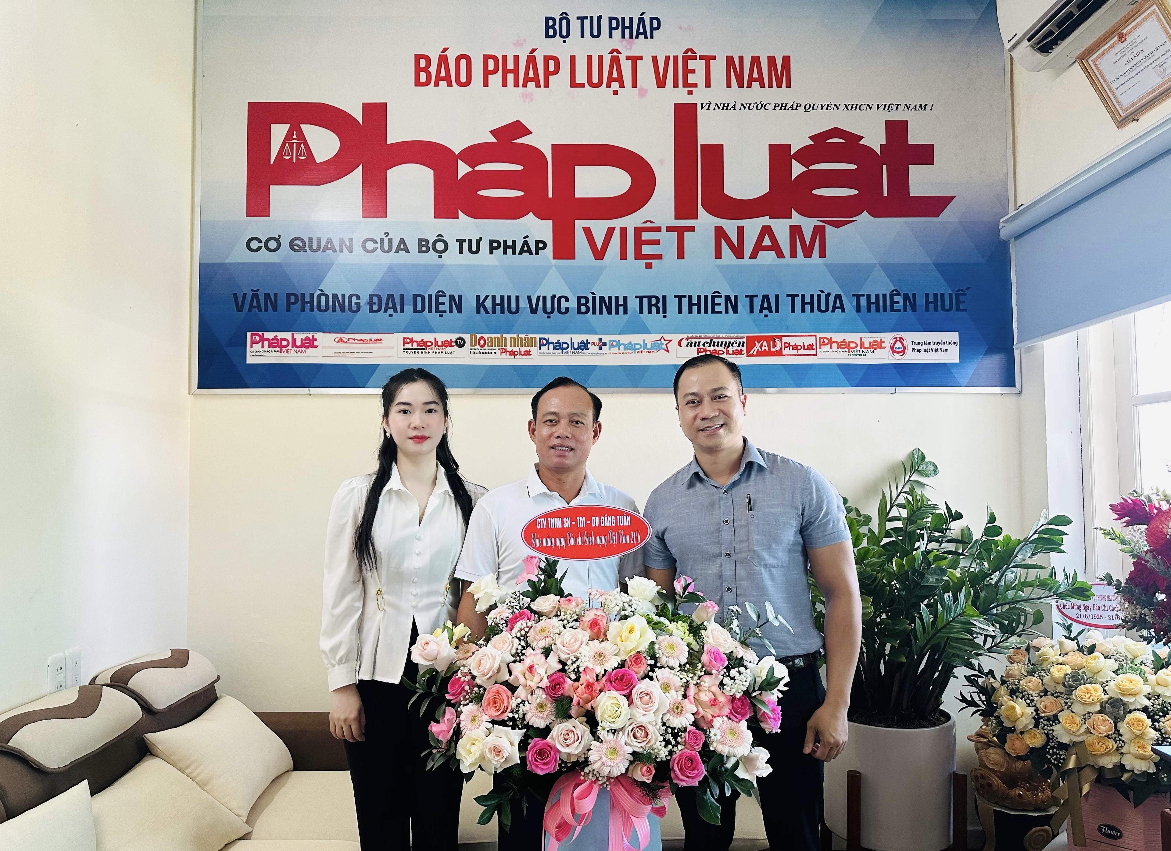 Công ty TNHH Sản Xuất Thương Mại Dịch Vụ Đăng Tuấn chúc mừng VPĐD Báo Pháp luật Việt Nam khu vực Bình Trị Thiên nhân ngày 21/6. |