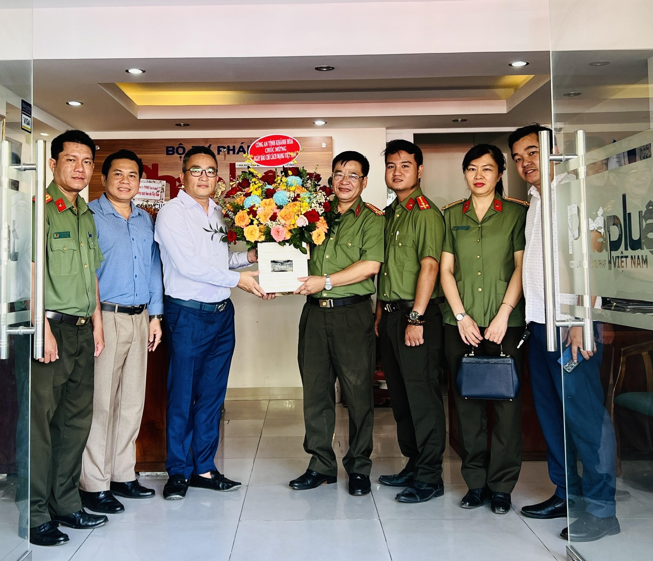 Đại diện lãnh đạo Công an tỉnh Khánh Hòa thăm, chúc mừng Văn phòng Báo Pháp luật Việt Nam tại Khánh Hòa. |