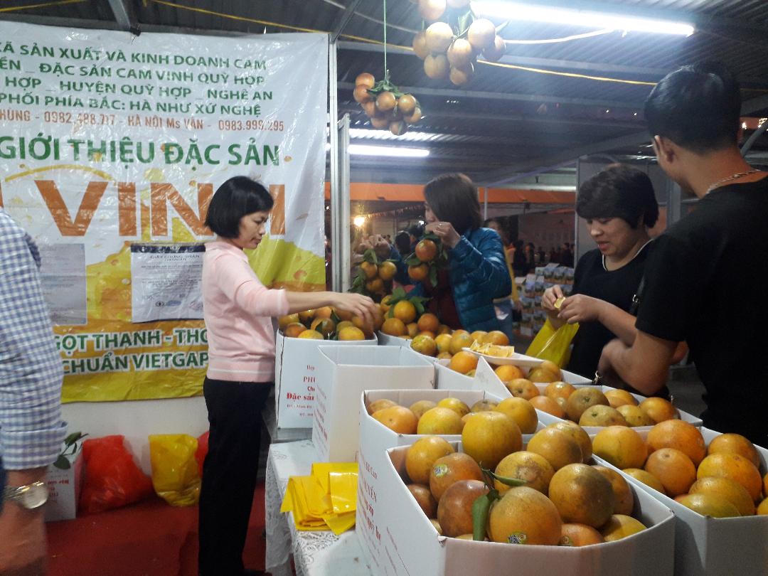 Trong đó, xuất hiện đặc sản cam Vinh Xã Đoài được bán với giá rất cao, gấp đôi giá trị các loại cam Vinh khác (80.000 đồng/kg). Thậm chí, loại cam được trồng trên đất gốc của cam Vinh có giá 100.000 đồng/quả cũng có mặt ở gian hàng trưng bày trong Tuần lễ này.